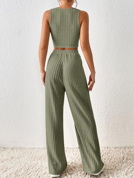 Ribbed Round Neck Tank and Pants Sweater Set