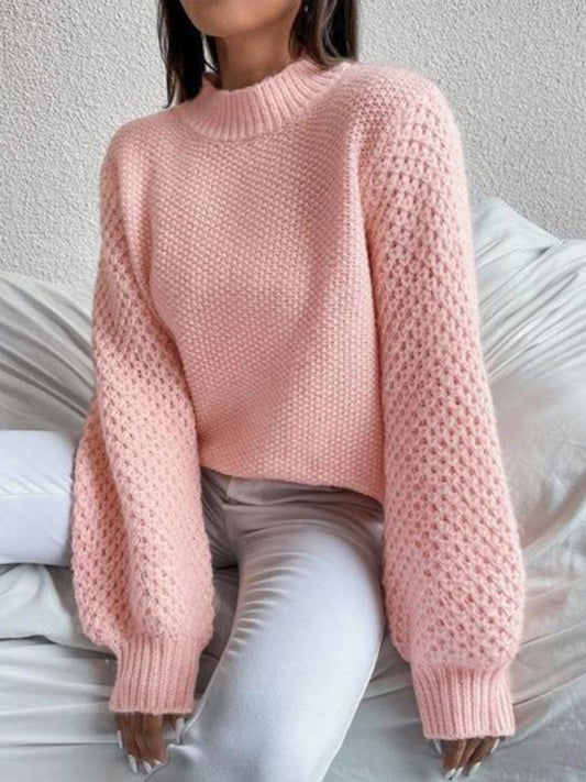 Openwork Mock Neck Long Sleeve Sweater